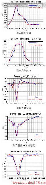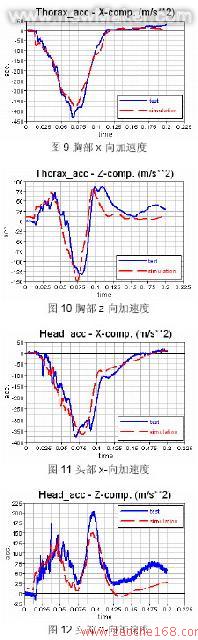 圖4-12 是MADYMO 模型響應(yīng)與US NCAP 碰撞試驗(yàn)結(jié)果的對(duì)比。