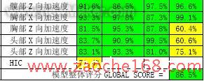 胸部x-向加速度主要受肩帶力和安全氣囊的影響,胸部z-向加速度受坐墊和安全氣囊的影響較大。頭部的加速度主要受安全氣囊的影響。在做驗(yàn)證的時(shí)候,注意各因素之間影響關(guān)系,才能建立較好的模型。