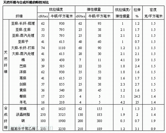 汽車用天然纖維主要是指植物纖維,如洋麻、大麻、亞麻、黃麻和劍麻等麻纖維及椰殼纖維等。與合成纖維相比,天然纖維及其復合材料具有如下性能方面的優(yōu)勢。
