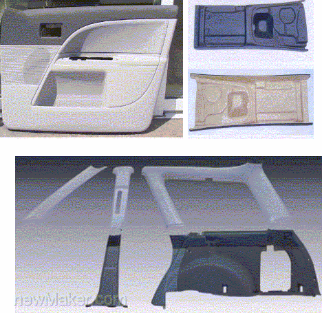 目前各汽車工業(yè)大國已經開始大量使用天然纖維復合材料,生產的產品有:轎車的門內板、行李廂、頂棚、座椅背板、衣帽架、儀表盤;以及卡/客車的車廂內襯板、門板、頂棚、座椅背板等。