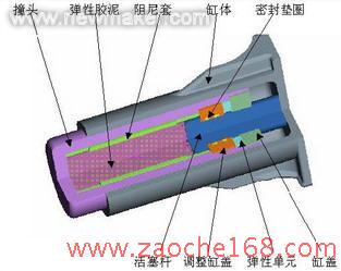 車鉤緩沖器應(yīng)用于機(jī)車車輛的連接部位,用以緩解縱向沖擊提高縱向舒適程度。國(guó)外目前橡膠緩沖器普遍采用的是疊層橡膠緩沖器和彈性膠泥緩沖器,領(lǐng)先于國(guó)內(nèi)使用的環(huán)簧式金屬緩沖器。以彈性膠泥緩沖器為例,其具有容量大,阻抗力小,體積小、質(zhì)量輕、吸收率高、檢修周期長(zhǎng),兼有液壓和橡膠緩沖器兩者的優(yōu)點(diǎn),在俄羅斯、法國(guó)和波蘭等歐洲國(guó)家的機(jī)、客、貨車上得到了廣泛應(yīng)用[36]。