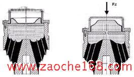 液體復(fù)合橡膠彈簧減振器(簡(jiǎn)稱液體復(fù)合彈簧),也稱液力減振器,是以橡膠彈性體密封流體(通常是不凍液,如乙二醇和丙二醇的混合液),利用流體的液壓支撐和橡膠共同起緩沖作用的,也屬非線性減振器。