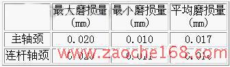 (2)經(jīng)600h臺架實驗前后曲軸磨損量