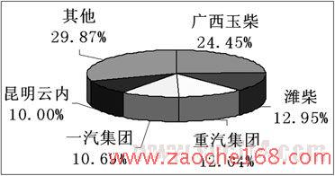本月銷量排在前五名的企業(yè)依次為:廣西玉柴、一汽集團(tuán)、昆明云內(nèi)、安徽全柴、朝柴,這五家企業(yè)共銷售車用柴油機(jī)79239臺,占車用柴油機(jī)總銷量的70.65%,比上月增長3.33個百分點;從銷售功率看,排名前五名的企業(yè)依次為:廣西玉柴、一汽集團(tuán)、重汽集團(tuán)、昆明云內(nèi)、朝柴,五家企業(yè)合計銷售功率為655.56萬千瓦,占車用柴油機(jī)總銷售功率的71.05%,比上月增長1.52個百分點。