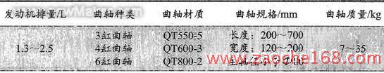 目前,正在開發(fā)試制和批量投產(chǎn)的曲軸有長(zhǎng)城曲軸(QT8O0-3)、南汽曲軸(QT650-3)、哈東安曲軸(QT700-3)、HS曲軸(QT8003)和498QT800-3)曲軸等。