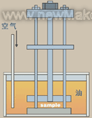 從拉伸大塊中沖出墊圈樣品,外徑為19毫米,內(nèi)徑為15毫米,厚度約為2毫米。每個(gè)夾具使用體積為200毫升的測試油。在測試油通風(fēng)和不通風(fēng)時(shí)測試所有樣品。包含在Elastocon設(shè)備內(nèi)的通風(fēng)組件被用于測試,樣品暴露于通風(fēng)機(jī)油。圖1顯示Elastocon設(shè)備包含單根塑料管,將空氣導(dǎo)入樣品容器內(nèi)。空氣流動(dòng)速度為7毫升/分。樣品被壓縮,厚度比室溫小25%,在150℃烤爐中老化。在整個(gè)測試期間,在老化溫度測量反作用力。