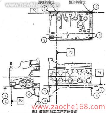 富康轎車發(fā)動機缸體加工工藝采用的是典型的三基面體系構建加工坐標系。