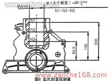 ·精加工缸孔的直徑、平均直徑測量如圖6(以EWl0缸體缸孔的直徑測量為例)。