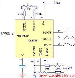ICL8038是美國Intersil公司生產(chǎn)的單片精密函數(shù)發(fā)生器專用芯片,可以輸出0.00l Hz一300KHz高質(zhì)量的正弦波、矩形被(或方波、窄脈沖)、三角波(或鋸齒波)等函數(shù)波形,具有頻率范圍寬、頻率穩(wěn)定度高、外圍電路簡單、便于制作等優(yōu)點(diǎn)。