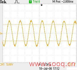 臺達(dá)B、V系列均具有高頻輸出的功能,通過其高頻輸出直接來給變壓器供電。從而簡化了臭氧電源電路的設(shè)計,以及其完善的保護(hù)措施保證了這個系統(tǒng)的可靠性和穩(wěn)定性。同時由于其完善的控制算法,在高頻輸出時保證了電流的穩(wěn)定。下圖是在變頻器的輸出端無電抗器,變壓器工作在額定頻率之上的電流波形。可以根據(jù)圖形看出,臺達(dá)變頻器在負(fù)載沖擊比較大的情況下,仍然能夠保證電流的平滑性。
