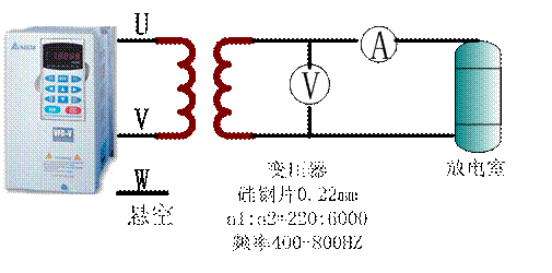 穩(wěn)定可靠,而且也決定了臭氧合成效率。目前臭氧發(fā)生器中電源系統(tǒng)可以根據(jù)頻率來分:工頻電源、中頻電源、高頻電源。頻率在400-1000HZ的電源可以稱為中頻電源,1000HZ以上可以稱為高頻電源。電極的工作特性要求與其匹配的供電電源必須具備穩(wěn)定的輸出頻率和適當(dāng)電壓峰值,這樣才能保證電極高效、可靠地工作。同時,為了使臭氧產(chǎn)量穩(wěn)定,供電電源的輸出功率應(yīng)該保持恒定。通常臭氧發(fā)生器中電源采用電壓調(diào)節(jié)器,結(jié)構(gòu)簡單、成本較低。但存在工作頻率不穩(wěn)定、輸出電壓隨輸入交流電壓波動而變化。采用變頻器+變壓器的方法不但能夠產(chǎn)生需要的恒功率高壓電源而且操作方便、性能可靠。臺達(dá)變頻器利用VFD-B或者VFD-V系列的BH版本的高速功能,滿足了臭氧發(fā)生器電源的要求。在現(xiàn)場中我們需要的變壓器的輸入端的電壓為單相的105V,頻率在800HZ.參數(shù)如下: