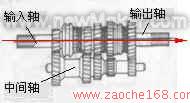 倒檔時輸出軸要向相反方向旋轉(zhuǎn)。如果一對齒輪嚙合時大家反向旋轉(zhuǎn),中間加上一個齒輪就會變成同向旋轉(zhuǎn)。利用這個原理,倒檔就要添加一個齒輪做“媒介”,將軸的轉(zhuǎn)動方向調(diào)轉(zhuǎn),因此就有了一根倒檔軸。倒檔軸獨(dú)立裝在變速器殼內(nèi),與中間軸平行,當(dāng)軸上齒輪分別與中間軸齒輪和輸出軸齒輪嚙合時,輸出軸轉(zhuǎn)向會相反。