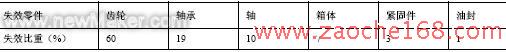 變速器是重要的傳動(dòng)裝置,各種機(jī)械中造成其失效的原因主要是由于設(shè)計(jì)不當(dāng)、裝配和制造不良及維護(hù)操作不善引起的。變速器中各類零件損壞的百分比如下表所示。