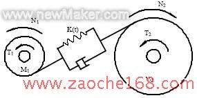 齒輪具有質(zhì)量,輪齒的柔性可看作彈簧,所以若以一對(duì)輪齒為研究對(duì)象,則該齒輪副可以看作是一個(gè)振動(dòng)系統(tǒng),如圖1 所示。