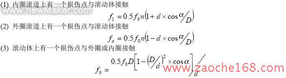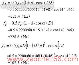 滾動(dòng)軸承缺陷的振動(dòng)特征頻率如下: