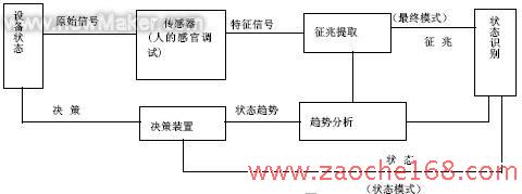 故障診斷最基本的問題就是運(yùn)用診斷知識(shí)對(duì)設(shè)備的有關(guān)狀態(tài)進(jìn)行模式識(shí)別,其過程可表述為圖2 所示。