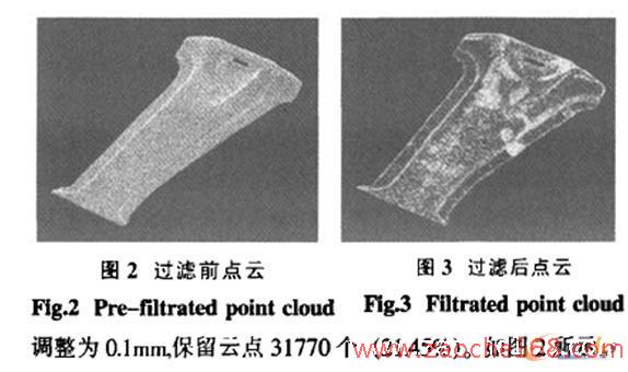 而且由于受光照條件、被測(cè)件表面反射特性和系統(tǒng)測(cè)量誤差、隨機(jī)誤差等影響,測(cè)量數(shù)據(jù)中存在著許多無(wú)用數(shù)據(jù),即所謂的"噪聲"點(diǎn)。因此必須對(duì)點(diǎn)云數(shù)據(jù)進(jìn)行過(guò)濾處理。