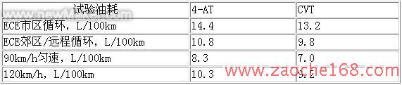 CVT可以在相當(dāng)寬的范圍內(nèi)實(shí)現(xiàn)無(wú)級(jí)變速,從而獲得傳動(dòng)系與發(fā)動(dòng)機(jī)工況的最佳匹配,提高整車的燃油經(jīng)濟(jì)性。德國(guó)的大眾公司在自已的Golf VR6轎車上分別安裝了4-AT和CVT進(jìn)行ECE市區(qū)循環(huán)和ECE郊區(qū)循環(huán)測(cè)試,證明CVT能夠有效節(jié)約燃油(如表1)