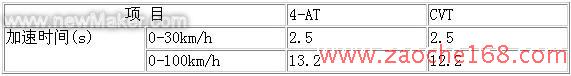 汽車的后備功率決定了汽車的爬坡能力和加速能力。汽車的后備功率愈大,汽車的動(dòng)力性愈好。由于CVT的無(wú)級(jí)變速特性,能夠獲得后備功率最大的傳動(dòng)比,所以CVT的動(dòng)力性能明顯優(yōu)于機(jī)械變速器(MT)和自動(dòng)變速器(AT)。表2為分別安裝4-AT和CVT的克萊斯勒的Voyager轎車的動(dòng)力性比較,安裝CVT的汽車擁有更佳的動(dòng)力性能。