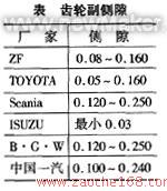 下表是一些汽車生產(chǎn)廠家選定的側(cè)隙,供設計時參考。