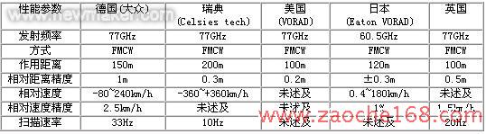 國外幾個主要公司的典型毫米波雷達(dá)產(chǎn)品的技術(shù)指標(biāo):