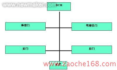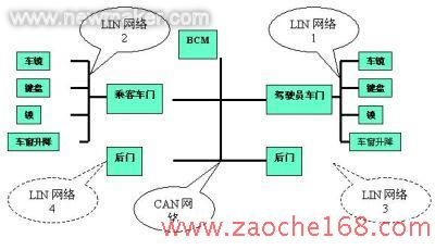 如前所述,通常BCM和四個車門通過一個CAN網(wǎng)絡(luò)連接。這是目前大量生產(chǎn)商采用的典型方案。這時,每個車門內(nèi)的高性能控制器(MCU),如常見的飛思卡爾HC908AZ60A, 直接控制車窗和車鏡。