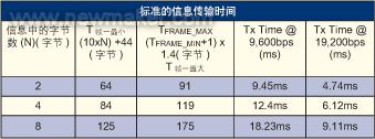 下表介紹了2、4、8字節(jié)信息在傳輸速率為600bit/sec 和19200bit/sec時的最長持續(xù)時間。本協(xié)議專用于1kbps和 20kbps之間的運(yùn)行,建議在LIN技術(shù)規(guī)范中也使用這些傳輸速率。如表1所示。
