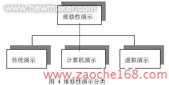 在目前發(fā)展水平上,維修性演示可分為三種:傳統(tǒng)的維修性演示、計(jì)算機(jī)演示和虛擬演示(如圖 4所示),后面分別簡(jiǎn)稱傳統(tǒng)演示、計(jì)算機(jī)演示和虛擬演示。
