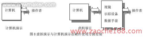 計(jì)算機(jī)演示和虛擬演示分別是用計(jì)算機(jī)圖形技術(shù)在計(jì)算機(jī)圖形環(huán)境下和用虛擬技術(shù)在虛擬環(huán)境下進(jìn)行維修性演示,都屬于維修性演示領(lǐng)域里的高新技術(shù)。兩者與傳統(tǒng)演示相比有共同點(diǎn),在兩者之間相比又存在很多差別。