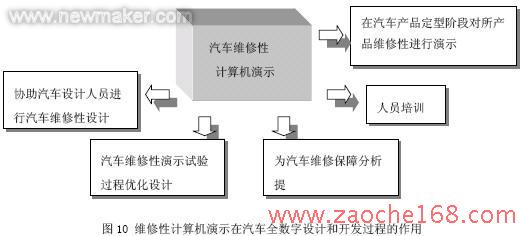 維修性計(jì)算機(jī)演示在汽車全數(shù)字設(shè)計(jì)和開(kāi)發(fā)過(guò)程的作用如圖10所示。