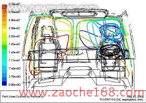 車身開發(fā)與車內(nèi)外的氣流的分析密切相關(guān),如車身的外形決定了汽車的外流場形態(tài),從而決定了汽車風(fēng)阻的大小,前部進(jìn)風(fēng)口是否合理決定了發(fā)動(dòng)機(jī)散熱效果。近年來,繼結(jié)構(gòu)有限元分析(FEM)成功地應(yīng)用于汽車產(chǎn)品開發(fā)之后,CFD分析也越來越多地應(yīng)用于車身開發(fā)過程中。汽車空調(diào)系統(tǒng)設(shè)計(jì)的好壞影響到各出風(fēng)口的風(fēng)量分配是否合理以及調(diào)節(jié)空氣質(zhì)量的能力,機(jī)艙流動(dòng)狀況直接影響散熱的效果,等等。CFD分析可以用計(jì)算機(jī)模擬的方法,在設(shè)計(jì)的前期對上述問題給出及時(shí)的預(yù)測,對設(shè)計(jì)進(jìn)行改進(jìn)優(yōu)化,如果在設(shè)計(jì)階段不能及時(shí)發(fā)現(xiàn)這些問題,到定型投產(chǎn)后再改設(shè)計(jì),將造成成本和周期上的巨大浪費(fèi),市場的損失更是無可挽回的。