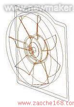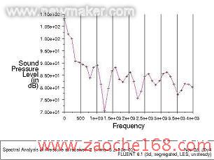 除振動(dòng)噪聲之外的氣動(dòng)噪聲是汽車噪聲的重要成分,包括外部氣流噪聲和內(nèi)部風(fēng)扇噪聲等。利用CFD分析可以給出氣動(dòng)噪聲的頻譜,通過改進(jìn)設(shè)計(jì),降低氣動(dòng)噪聲,提高整車質(zhì)量(參見圖8風(fēng)扇、圖9風(fēng)扇噪聲頻譜)。