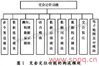 系統(tǒng)采用Boland公司的Delphi 7.0作為前臺(tái)開(kāi)發(fā)環(huán)境,后臺(tái)則采用Oracle 8.O大型關(guān)系數(shù)據(jù)庫(kù)系統(tǒng),以Maplnfo公司的地理信息系統(tǒng)控件(ActiveX)MapX作為地圖控件。圖1是交會(huì)定位功能的構(gòu)成模塊。