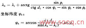 假定兩個(gè)測(cè)向點(diǎn)為P1=(λ1,φ1),P2=(λ2,φ2),兩個(gè)測(cè)向角為ρ1和ρ2,求信號(hào)輻射源的坐標(biāo)S=(λs,φs)。