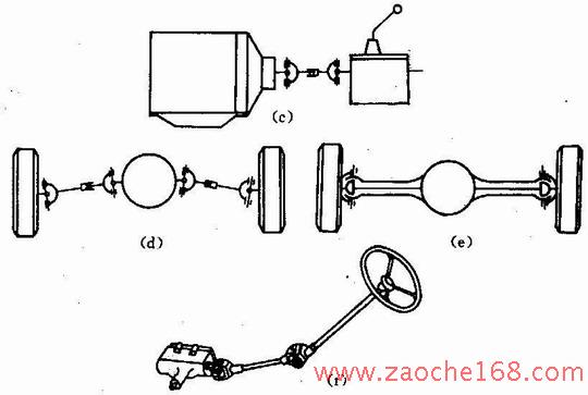 另外在越野車變速器與分動器之間,前驅(qū)動的可轉(zhuǎn)向驅(qū)動橋與半軸之間,都需要這個萬向節(jié)做“關(guān)節(jié)”。萬向節(jié)的結(jié)構(gòu)和作用有點象人體四肢上的關(guān)節(jié),它允許被連接的零件之間的夾角變化。但它與肢體關(guān)節(jié)的活動形式又有所不同,它僅允許夾角在一定范圍內(nèi)變化。