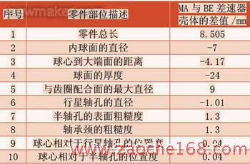 1 MABE差速器殼體主要技術(shù)要求的差異