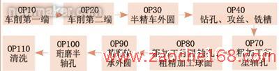 2. 在工藝方面,改變了法國(guó)成熟的珩磨半軸孔、精磨軸承外徑的工藝方案,通過(guò)合理分配加余量,選擇合適的高效刀具和匹配的加工參數(shù),實(shí)現(xiàn)了鏜孔代替珩磨、以精車代替磨削的工藝。