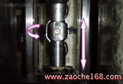 OP40的刀具設(shè)計(jì):OP40是一臺(tái)三工位的數(shù)控組合機(jī)床,分別為011/012/013工位。013工位是球面加工工位,刀具采用的結(jié)構(gòu)是曲柄連桿機(jī)構(gòu),當(dāng)?shù)稐U上的旋轉(zhuǎn)點(diǎn)下降到球心的位置后,通過(guò)機(jī)床伺服電機(jī)推動(dòng)刀具的曲柄連桿機(jī)構(gòu)運(yùn)動(dòng),完成球面的粗加工(如圖8)。我們重新設(shè)計(jì)了如圖9所示的共用的刀體,簡(jiǎn)化了換型,不同品種間僅更換不同的刀夾即可。