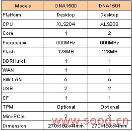 壓縮引擎卸載壓縮,它的功能就像一個(gè)自主IP 分段,解除額外的處理能力以使內(nèi)部擁有更大的效率和吞吐量。該安全引擎是支持IPsec和SSL的虛擬專用網(wǎng)絡(luò)( VPN )解決方案。DNA1500 和 DNA1501 包括XLS204 (單核)/XLS208(雙核) CPU的無風(fēng)扇設(shè)計(jì), 128MB Flash, 1個(gè) DDRII 槽可達(dá)1GB, 1xWAN, 5x switch 口, 1xcompact Flash, 2x mini-PCI-E 和 2x USB 口。