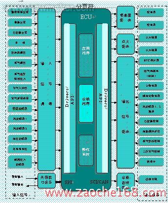 - 電控單元ECU(Electronic Control Unit) 和控制算法程序軟件 其作用是通過采集各種傳感器輸入信號(hào)并將信號(hào)進(jìn)行調(diào)理,根據(jù)發(fā)動(dòng)機(jī)管理控制算法進(jìn)行運(yùn)算,然后輸出控制信號(hào)并進(jìn)行功率放大給執(zhí)行器。同時(shí)檢測(cè)傳感器信號(hào)正常狀態(tài),出現(xiàn)故障時(shí)報(bào)警。