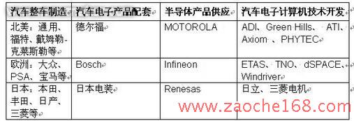 其他參與汽車發(fā)動(dòng)機(jī)電子控制系統(tǒng)部分產(chǎn)品開發(fā)與應(yīng)用的廠商主要有偉世通、法雷奧、西門子、飛利浦、NEC、德州儀器、ST(意法半導(dǎo)體)、東芝 、日立、富士通、珀金斯、霍尼韋爾、馬瑞利等。
