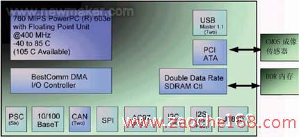 ---BestComm智能DMA控制器能加快攝像機(jī)數(shù)據(jù)傳輸?shù)絻?nèi)存中進(jìn)行處理的速度,從而最大程度地減輕MPC603e主處理器核心上的負(fù)荷,使其可以解放出來(lái),處理視頻探測(cè)算法等任務(wù)。此外,BestComm控制器的使用還可以降低主核心上的總體中斷負(fù)荷,繼而加速總體吞吐量。集成的CAN和J1850控制器,再加上外置MOST(面向媒體的系統(tǒng)傳輸)的支持,為汽車安全系統(tǒng)的剩余部分提供了經(jīng)濟(jì)高效的集成,并降低了與這些網(wǎng)絡(luò)進(jìn)行通信的延遲。