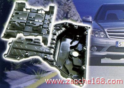 “底盤(pán)/金屬件”獎(jiǎng)的優(yōu)勝者是第一種用于旅行車(chē)的熱塑性油盤(pán)模塊。該模塊上部采用了鑄鋁蓋,底部外殼采用了杜邦的35%玻纖增強(qiáng)Zytel 70G35 HSLR尼龍66注射成型。這種油盤(pán)目前安裝在Daimler C級(jí)柴油轎車(chē)上,比全鋁油盤(pán)輕1kg。另外,由于熱穩(wěn)定尼龍的流程長(zhǎng),因而注射成型周期可縮短20%~25%。在150℃下,該油盤(pán)具有更好的剛性和耐油性。一體化的氣阻托盤(pán)/擋油圈被焊接到油盤(pán)的平坦部位。這種一體化的擋油圈改善了燃油的流動(dòng)性,從而減小了燃油的晃動(dòng)。對(duì)于該部件,杜邦還希望再集成一些其他部件,如導(dǎo)油管、油水平開(kāi)關(guān)、油過(guò)濾器以及其他的回油部件。