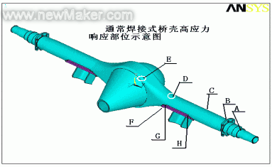 為了適應(yīng)激烈的市場競爭,滿足用戶需求,企業(yè)需要開發(fā)出高品質(zhì)、低價位的新產(chǎn)品。為此,CAE技術(shù)在汽車產(chǎn)品開發(fā)過程中越來越多地得到開發(fā)人員的應(yīng)用。針對某型車的引進(jìn)吸收開發(fā)過程中,其海南路試發(fā)現(xiàn)后橋存在的局部強(qiáng)度不足的情況,用ANSYS有限元分析系統(tǒng)對其后橋殼進(jìn)行了計(jì)算分析比較,并優(yōu)化該產(chǎn)品的設(shè)計(jì)。