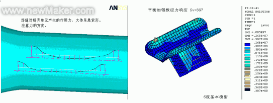 通過對車后橋殼的改進(jìn),可以達(dá)到不增加橋殼應(yīng)力響應(yīng)的條件下,有效的壓低焊縫應(yīng)力響應(yīng),如前期實(shí)驗(yàn)的疲勞源的確發(fā)生在焊縫上,屬于平衡桿支架焊接方面的問題,改進(jìn)方向是盡可能弱化平衡桿支座剛度,降低對橋殼的附加約束并減小焊縫應(yīng)力響應(yīng)。