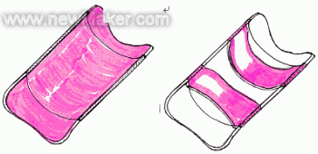 綜合上述分析對支座板結(jié)構(gòu)進(jìn)行優(yōu)化設(shè)計(jì),去掉原設(shè)計(jì)中向外沿伸的“耳字形”托板,將支座板兩端中部剪為內(nèi)凹入形,以減少焊縫端點(diǎn)的應(yīng)力集中,如圖8所示。