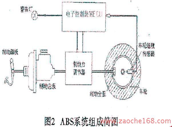 汽車的制動(dòng)力取決于制動(dòng)器的摩擦力,但能使汽車制動(dòng)減速的制動(dòng)力,還受地面附著系數(shù)的制約。當(dāng)制動(dòng)器產(chǎn)生的制動(dòng)力增大到一定值時(shí),汽車輪胎將在地面上 出現(xiàn)滑移。據(jù)試驗(yàn)證實(shí),當(dāng)車輪滑移率為15%~20%時(shí)附著系數(shù)達(dá)到最大值(圖1),因此,為了取得最佳的制動(dòng)效果,一定要將車輪滑移率控制在15%~20%范圍內(nèi)。ABS的工作原理是,依靠裝在各車輪上高靈敏度的車輪轉(zhuǎn)速傳感器(以及車身上的車速傳感器),通過計(jì)算機(jī)控制,一旦緊急制動(dòng)時(shí)發(fā)現(xiàn)某個(gè)車輪抱死,計(jì)算機(jī)立即指令壓力調(diào)節(jié)器使該輪的制動(dòng)分泵減壓,使車輪恢復(fù)轉(zhuǎn)動(dòng)(圖2)。ABS的工作過程實(shí)際上是抱死→松開→抱死→松開的循環(huán)工作過程,剎車在1s的時(shí)間內(nèi)可作用60至120次,即相似于機(jī)械自動(dòng)化的“點(diǎn)剎”動(dòng)作,使車輪始終處于臨界抱死的間隙滾動(dòng)狀態(tài)(車輪滑移率在15%~20%范圍內(nèi),即圖1陰影部分)。從而提高制動(dòng)減速度,縮短制動(dòng)距離,但最重要的還是克服側(cè)滑和跑偏,保證汽車的方向穩(wěn)定性,防止車身失控等情況的發(fā)生。