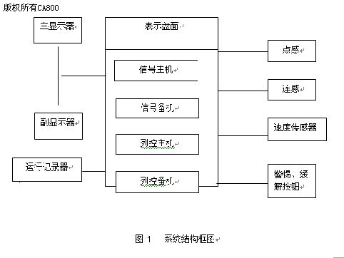 列車速度監(jiān)控系統(tǒng)由信號(hào)主、備機(jī),列控主、備機(jī),主、副顯示器,列車運(yùn)行記錄器,信號(hào)感應(yīng)器,速度傳感器,警惕按鈕和緩解按鈕等組成,系統(tǒng)結(jié)構(gòu)框圖如圖1所示。