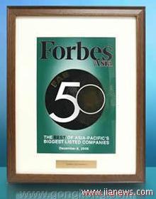 “亞洲頂尖50強”是福布斯雜志從全球500個大企業(yè)中,挑選在亞洲地區(qū)上市的企業(yè),其營收或市值超過50億美金,評鑒企業(yè)的長期活力能力、營收、成長性、股價等多項指標后所得的結(jié)果。
