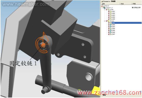運(yùn)動(dòng)副1J001): 構(gòu)件1L001)與機(jī)架組成的固定鉸鏈 J001,作為原動(dòng)件,運(yùn)動(dòng)驅(qū)動(dòng)為球鉸。